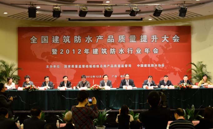 2012年12月7日,由國家質(zhì)量監(jiān)督檢驗檢疫總局、中國建筑防水協(xié)會主辦的全國建筑防水產(chǎn)品質(zhì)量提升大會在桂林召開。國家質(zhì)檢總局產(chǎn)品質(zhì)量監(jiān)督司鄭衛(wèi)華巡視員主持會議。我公司作為會員單位也參加了這次會議。